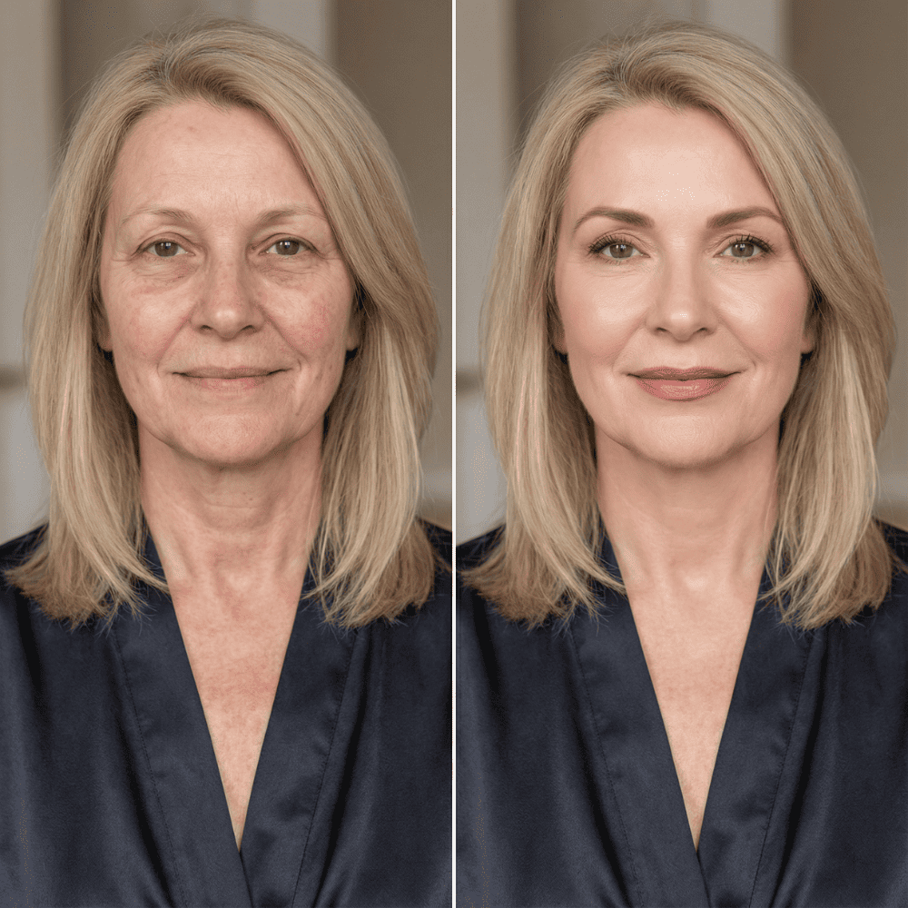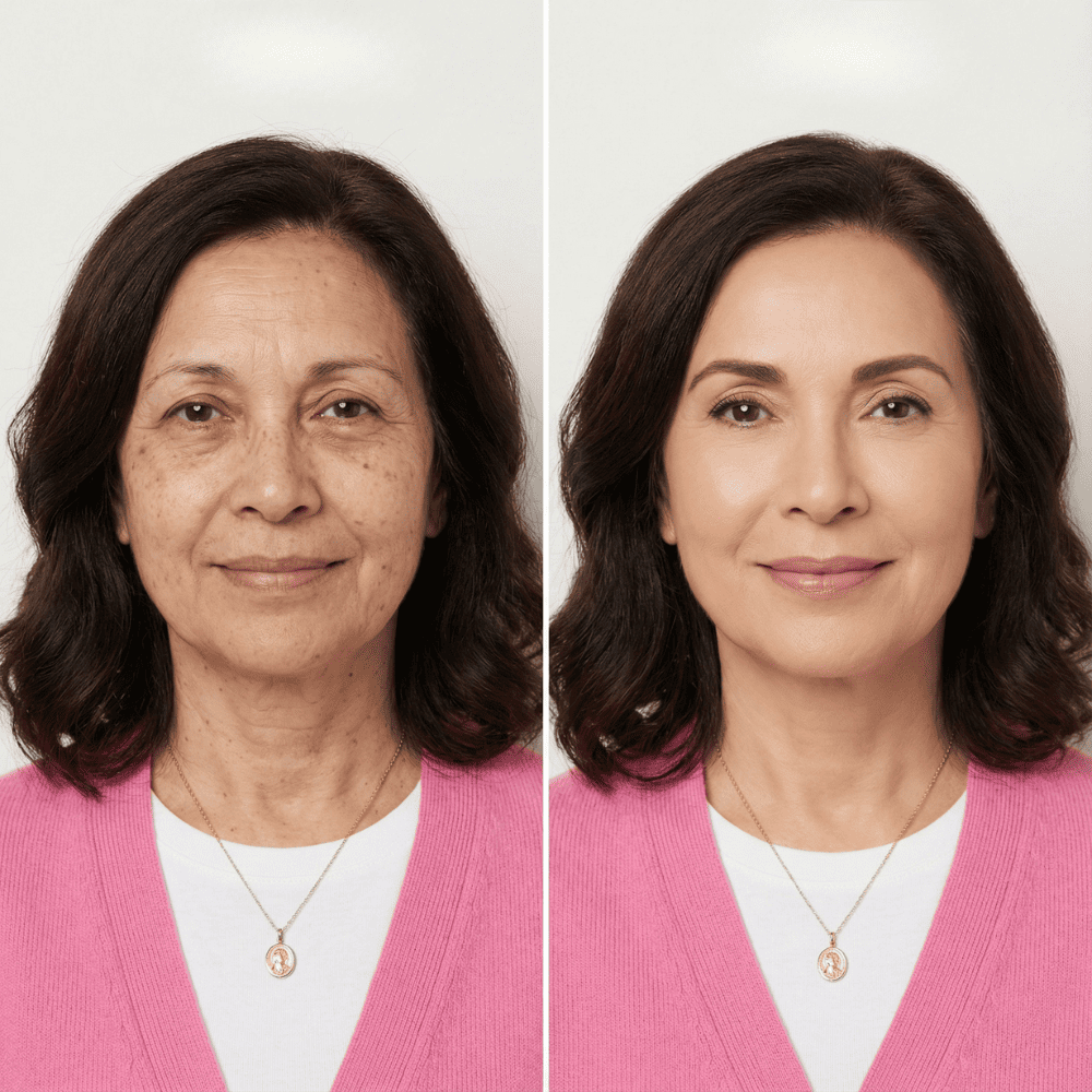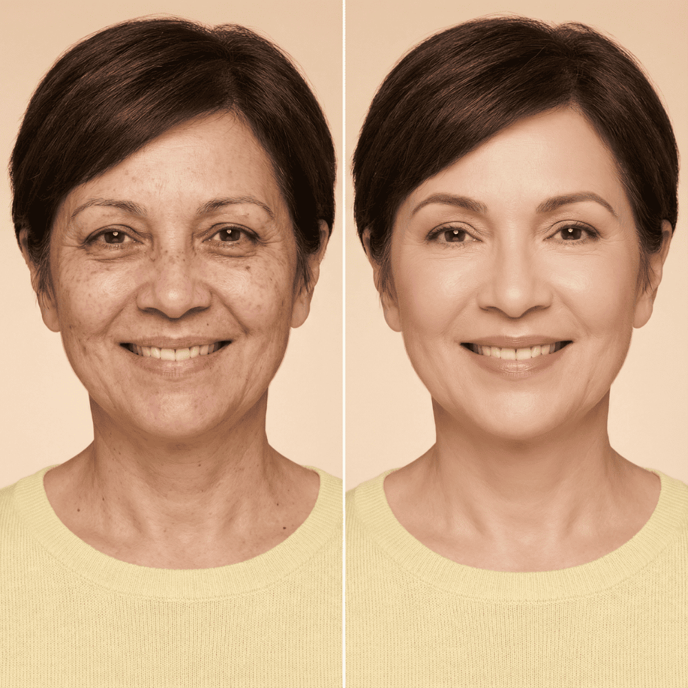 We offer 6 shades created specifically for mature light-to-medium tones. If you’re unsure, choose the lighter option — our formula blends seamlessly and adjusts visually to your undertone.